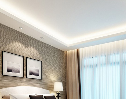 Маскировочная лента или как её ещё называют — вставка, специально предназначена для того, чтобы закрыть технологический зазор между стеной и установленным потолком. Она может быть белой либо в тон цвета вашего потолка. Вставку можно заменить полиуретановыми декоративными багетами, которые продаются в магазинах. Данные багеты наклеиваются на стену, но ни в коем случае не на потолок!