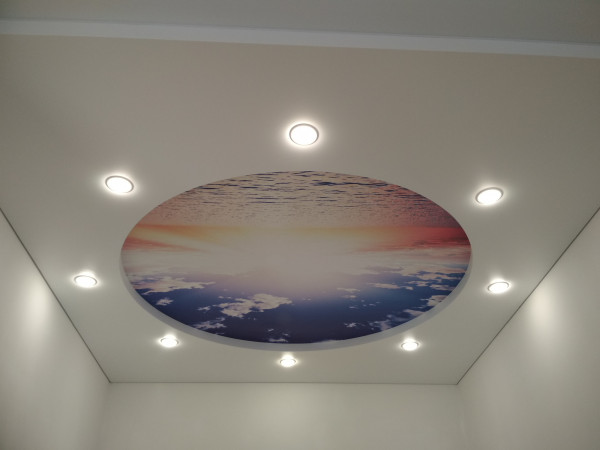 Если вы хотите подчеркнуть интерьер помещения, придать ему оригинальности и свежести, вам оптимально подойдут натяжные потолки с рисунком. Они представляют собой стандартные полотна любого вида (глянцевые, матовые, тканевые и т.д.), на которые нанесена фотопечать. Рисунком может выступать какой-либо абстрактный узор или полноценная фотография – например, это могут быть изображения фруктов на кухне, морская тематика в ванной комнате, урбанистический пейзаж в гостиной. Выбор изображения зависит от личных предпочтений, а также размеров и дизайна комнаты.