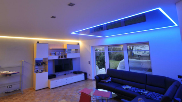 Натяжной потолок является одним из лучших вариантов отделки для гостиной. Его полотна имеют привлекательный и элегантный внешний вид и при этом являются прочными и износостойкими. С помощью натяжного потолка можно замаскировать многие неровности и трещины, не проводя дополнительной шпаклевки или грунтовки. Монтаж данного отделочного материала не потребует много времени – с работой можно справится за считаные часы.